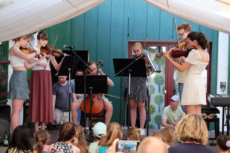 Hofkonzert der Extraklasse: Als Vater einer Schülerin der Musikscheune Amadeus, kam ich am 16.07.2022 in den Genuss eines Konzerts der Extraklasse. Der weit geöffnete Hof der Scheune lud die Gäste dazu ein, unter Weinlaub und Zelten Platz zu nehmen, um dem bunt gemischten Programm der Kinder zu lauschen.