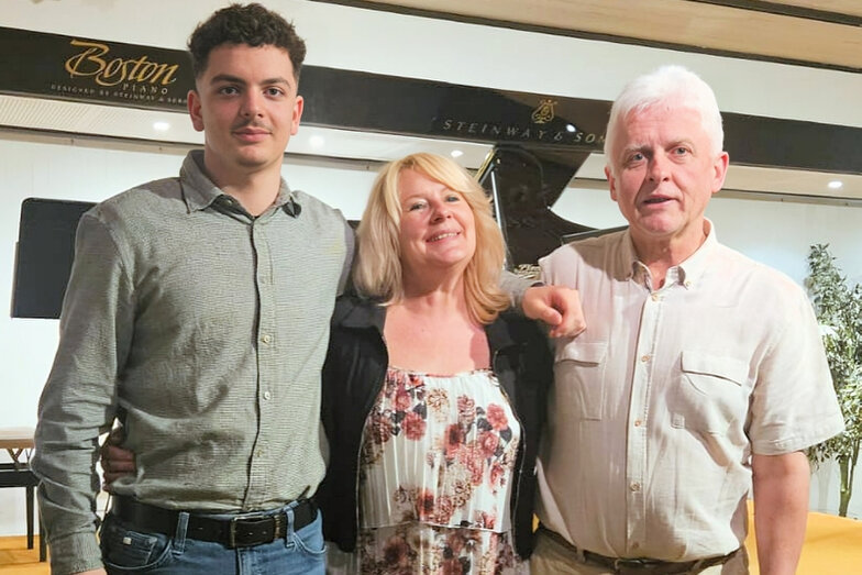 Ein Garant für Qualität im Bereich Popgesang: Malte Grimm, Sohn von Frau Kindl, dessen Schülerin sich mit „Heartbreak Anniversary „ ins Herz des Publikums sang. Danach kam sein eigener locker und lässig dargebrachter Song zum Vortrag, der in die Kategorie „ Vollprofi“ gehört. Folgt der langjährige Schüler am Klavier, der uns den „Chopin erklärte“ als Verfolgungsjagd durch seinen Traum und danach spielte wie ein junger Gott. Als er fertig war lockte er seine Lehrerin Edna Kindl mit Rhythmen von „Cia, bella ciao“ zu ihm ans Klavier, damit sie im Stehen mit ihm gemeinsam improvisierte. Ein herrlicher Abschluss seines Vortrags!