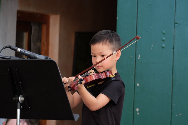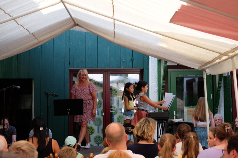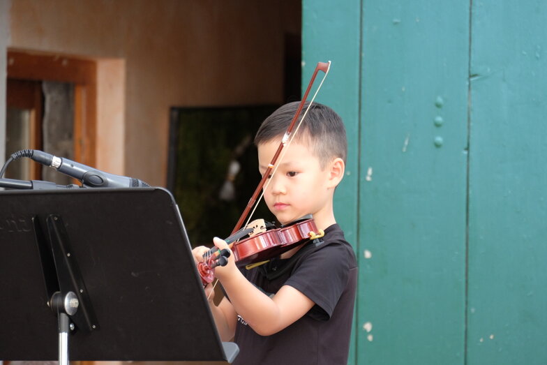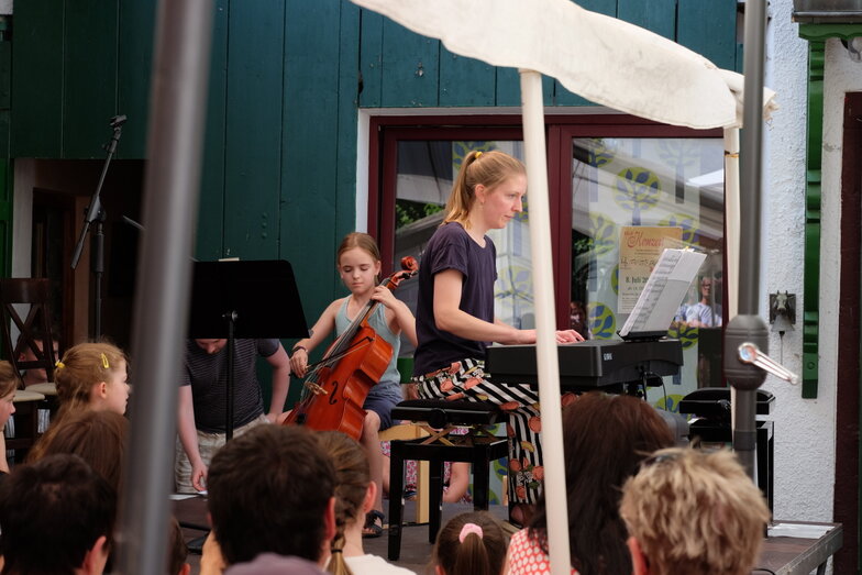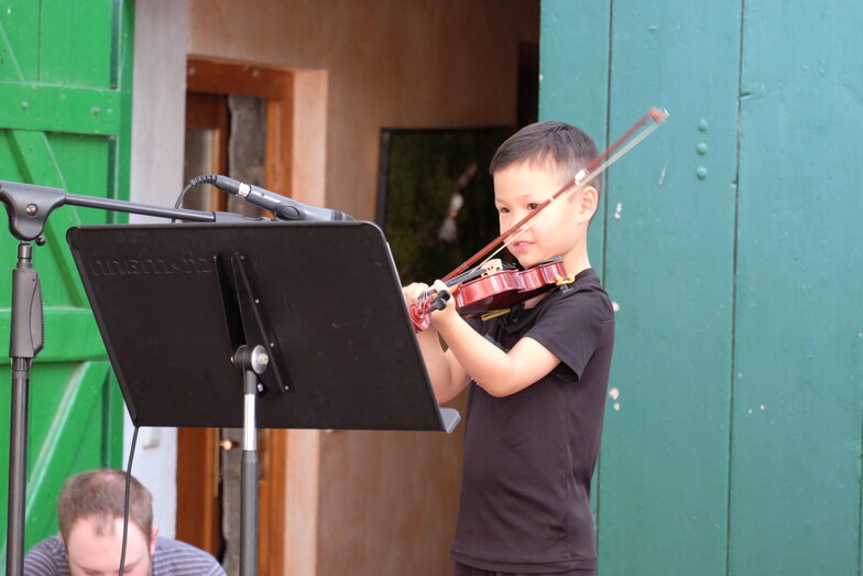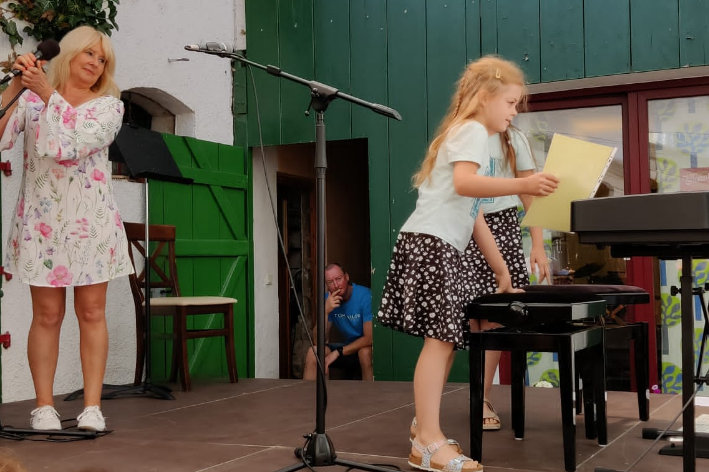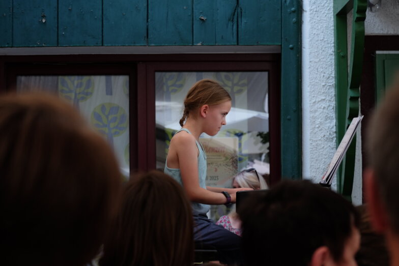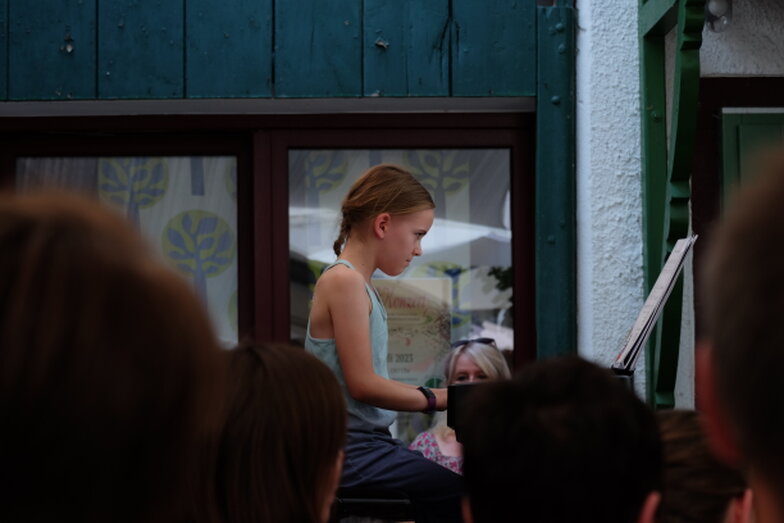 Hofkonzert der Extraklasse: Als Vater einer Schülerin der Musikscheune Amadeus, kam ich am 16.07.2022 in den Genuss eines Konzerts der Extraklasse. Der weit geöffnete Hof der Scheune lud die Gäste dazu ein, unter Weinlaub und Zelten Platz zu nehmen, um dem bunt gemischten Programm der Kinder zu lauschen.