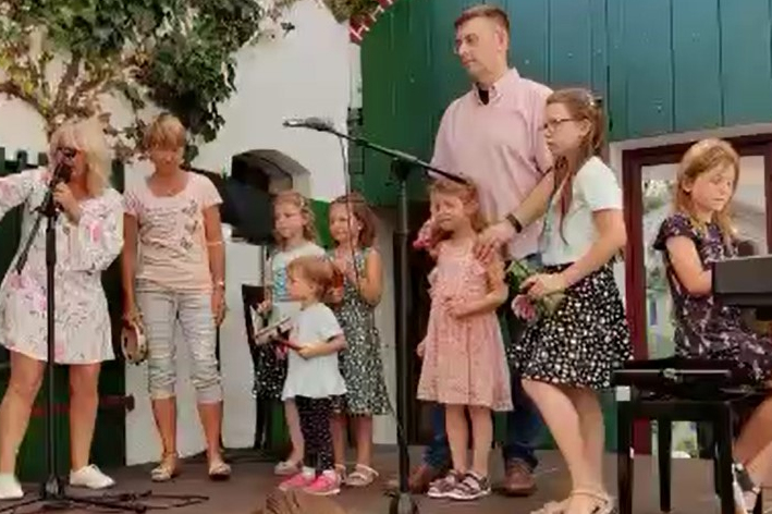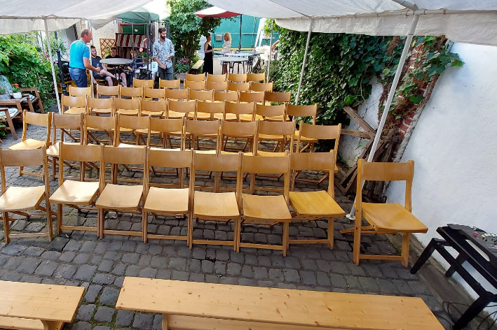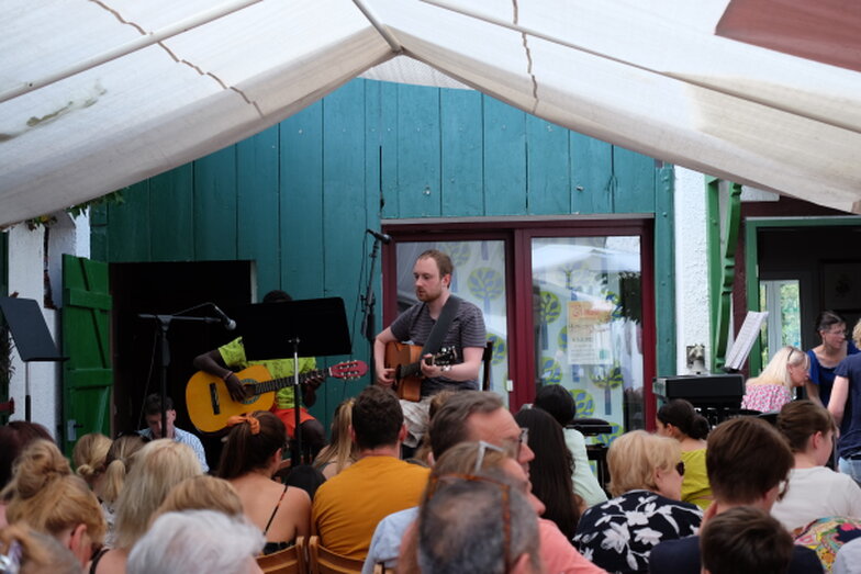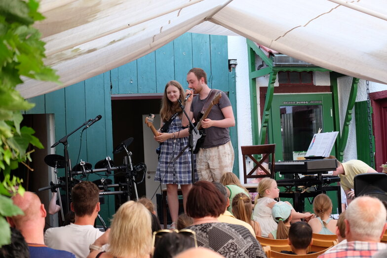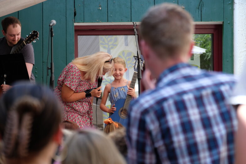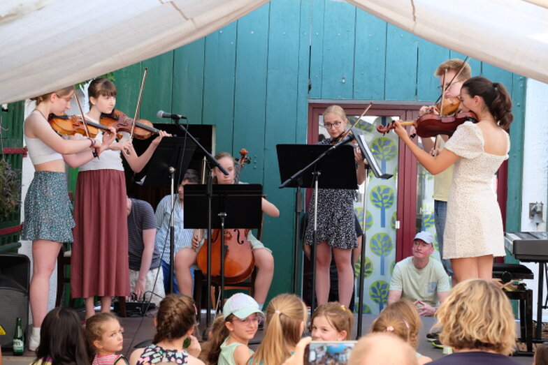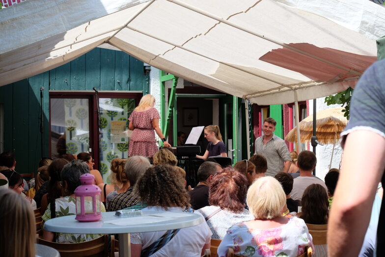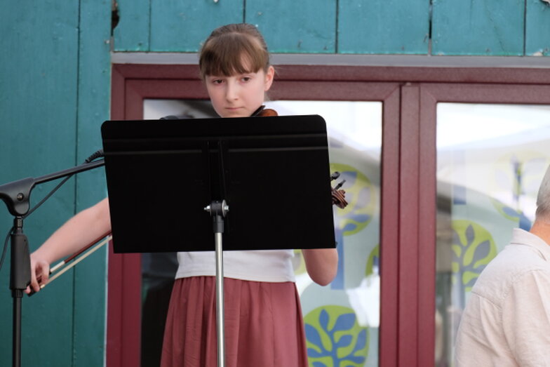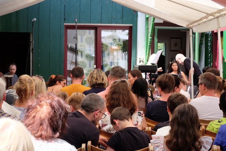 Hofkonzert der Extraklasse: Als Vater einer Schülerin der Musikscheune Amadeus, kam ich am 16.07.2022 in den Genuss eines Konzerts der Extraklasse. Der weit geöffnete Hof der Scheune lud die Gäste dazu ein, unter Weinlaub und Zelten Platz zu nehmen, um dem bunt gemischten Programm der Kinder zu lauschen.