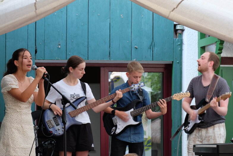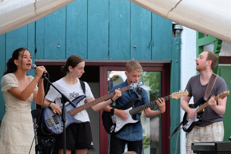 Als alter „Rock-Roller“ freut es mich besonders, dass es nach der langen Corona Zeit wieder eine neue Band in der Musikscheune gibt. Mathis Grimm, ältester Sohn von Frau Kindl hat mit seinen Schülern/innen seine neue Formation präsentiert. Das erste Mal auf der Bühne: Mit „Do I wonna Know“ von den Arctis Monkeys begeisterte die neu gegründete Band das Publikum.