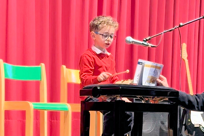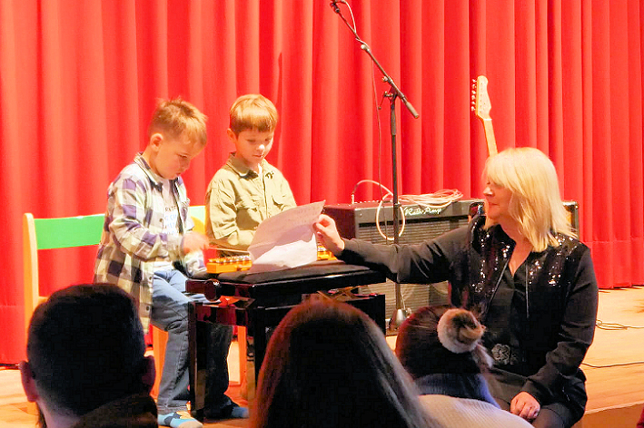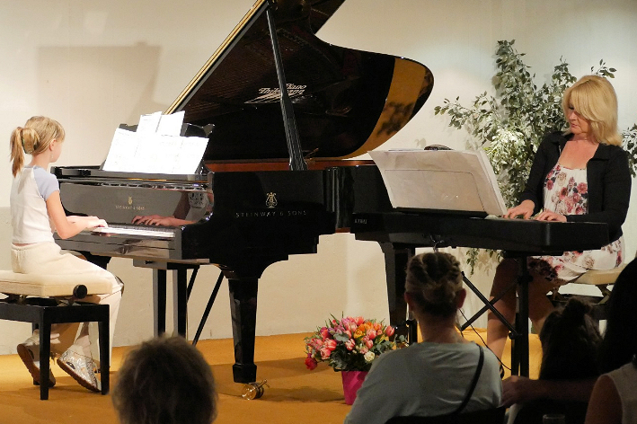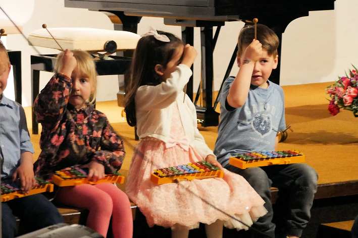 Edna Kindl als Leiterin der Musikscheune moderierte durch den fast 4- stündigen Nachmittag. Mit ihrer erfrischend spontanen und humorvollen Art erzählte sie kleine Anekdoten aus ihrem Unterrichtsalltag mit den Kindern, so dass jeder Programmpunkt mit Spannung erwartet wurde. Da war z.B. der kleine Junge am Klavier, der erst spielen wollte, nachdem er „Schnick-Schnack Schmuck“ mit dem „Allesfresser“ gewonnen hatte, dann aber legte er los mit einem wahren Tastenzauber.