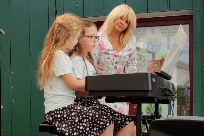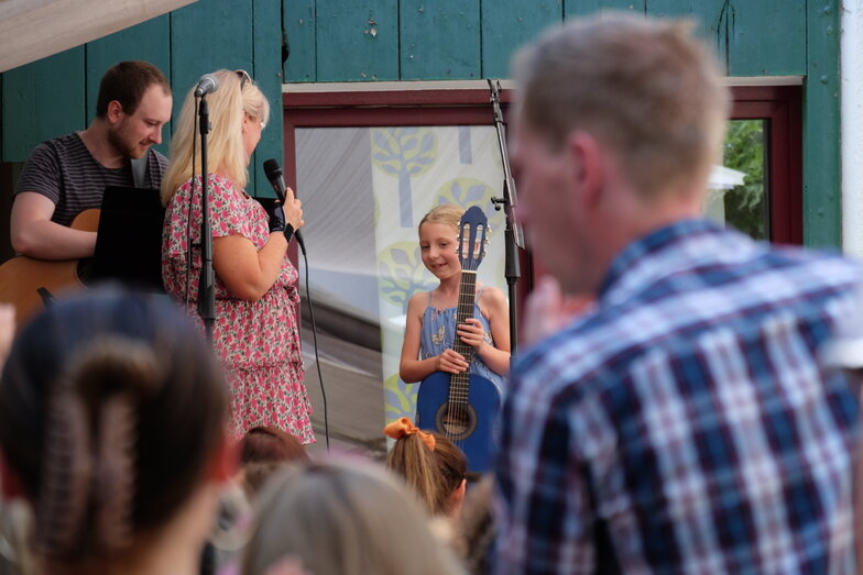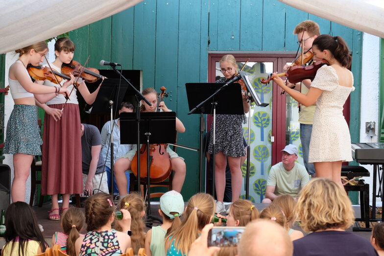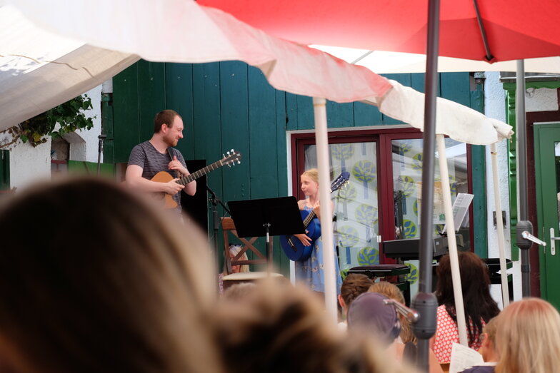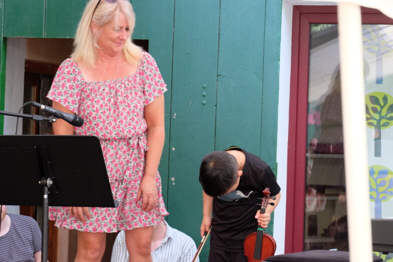 Hofkonzert der Extraklasse: Als Vater einer Schülerin der Musikscheune Amadeus, kam ich am 16.07.2022 in den Genuss eines Konzerts der Extraklasse. Der weit geöffnete Hof der Scheune lud die Gäste dazu ein, unter Weinlaub und Zelten Platz zu nehmen, um dem bunt gemischten Programm der Kinder zu lauschen.